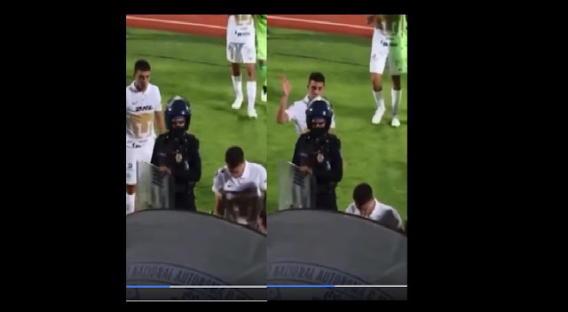 Sin embargo esta circulando en redes sociales un video que esta generando mucha polémica pues el jugador de los Pumas, Erik Lira cuando se dirigía al vestidor Universitario golpeo en la cabeza a un elemento de la policía quien resguardaba la seguridad del estadio.